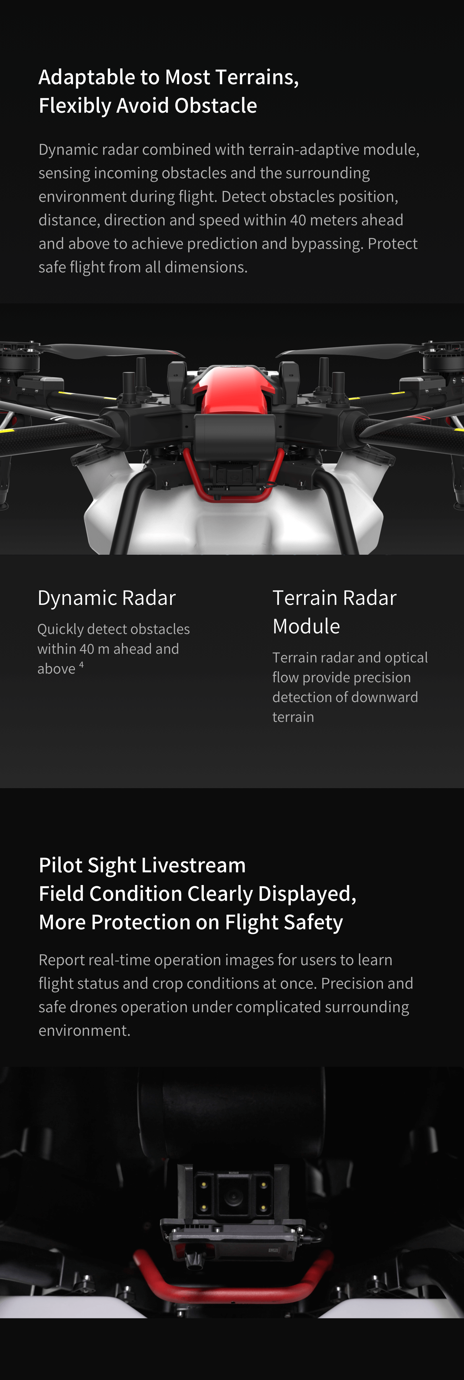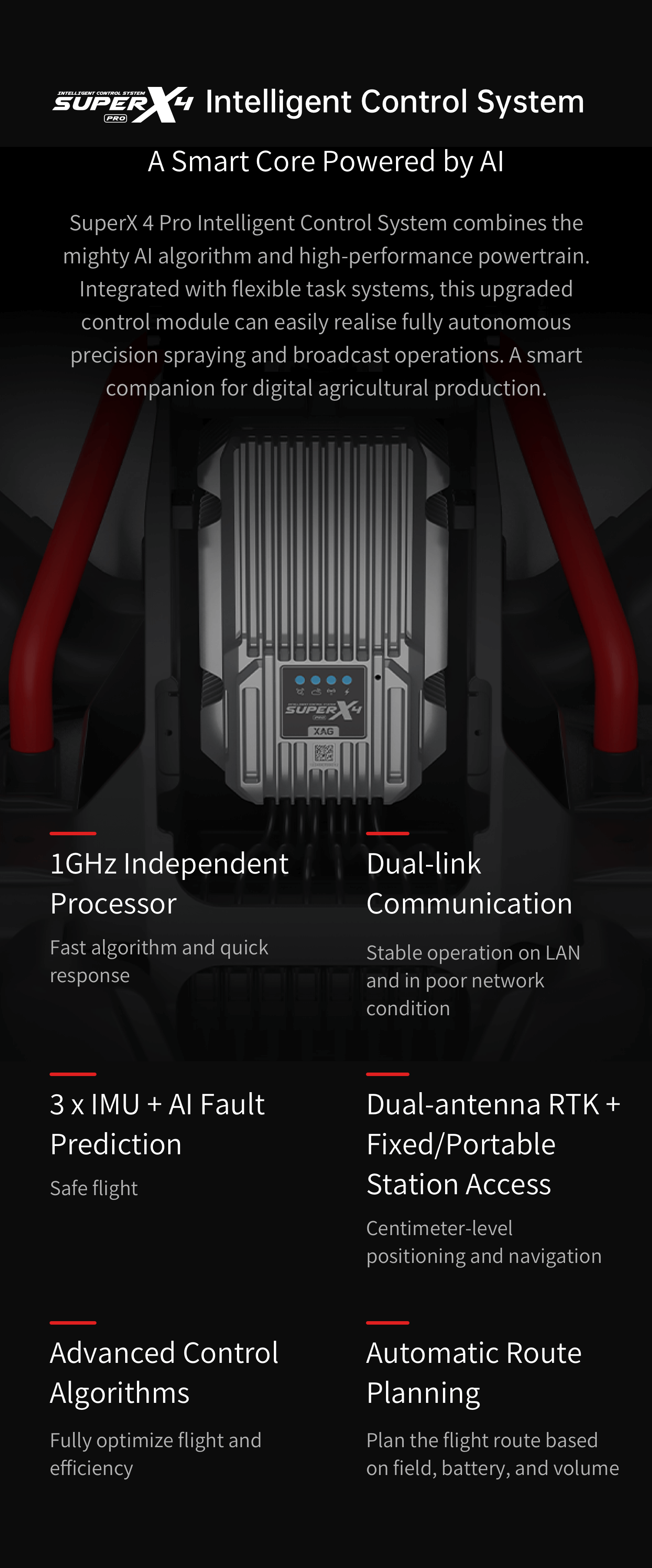 Automatic Route PlanningPlan the flight route based on field, battery, and volume