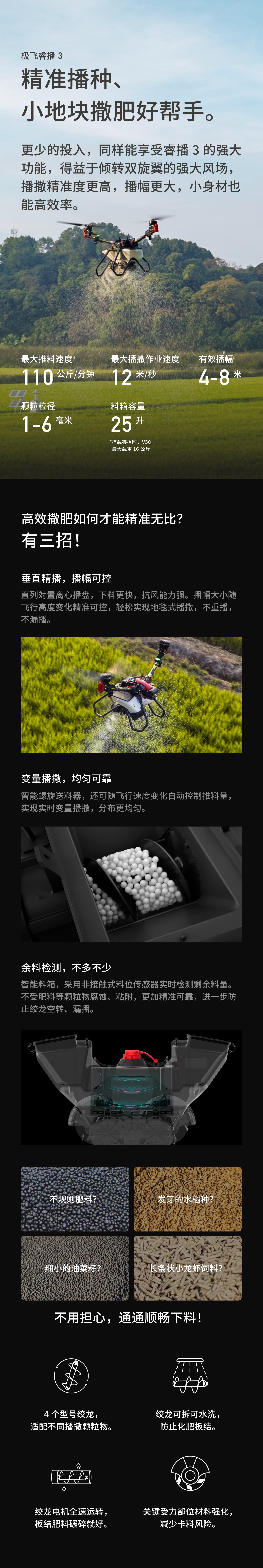 播撒精准度更高,播幅更大,