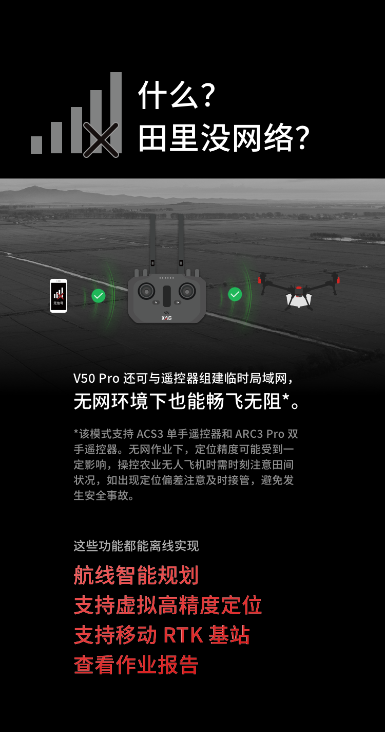 可通过遥控器随时接管正在自主飞行的农业无人飞机,