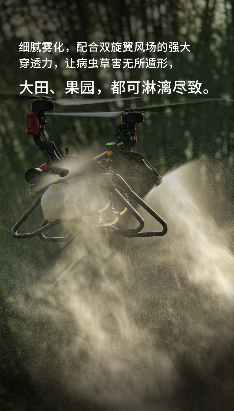 细腻雾化,配合双旋翼风场的强大穿透力,让病虫草害无所遁形,