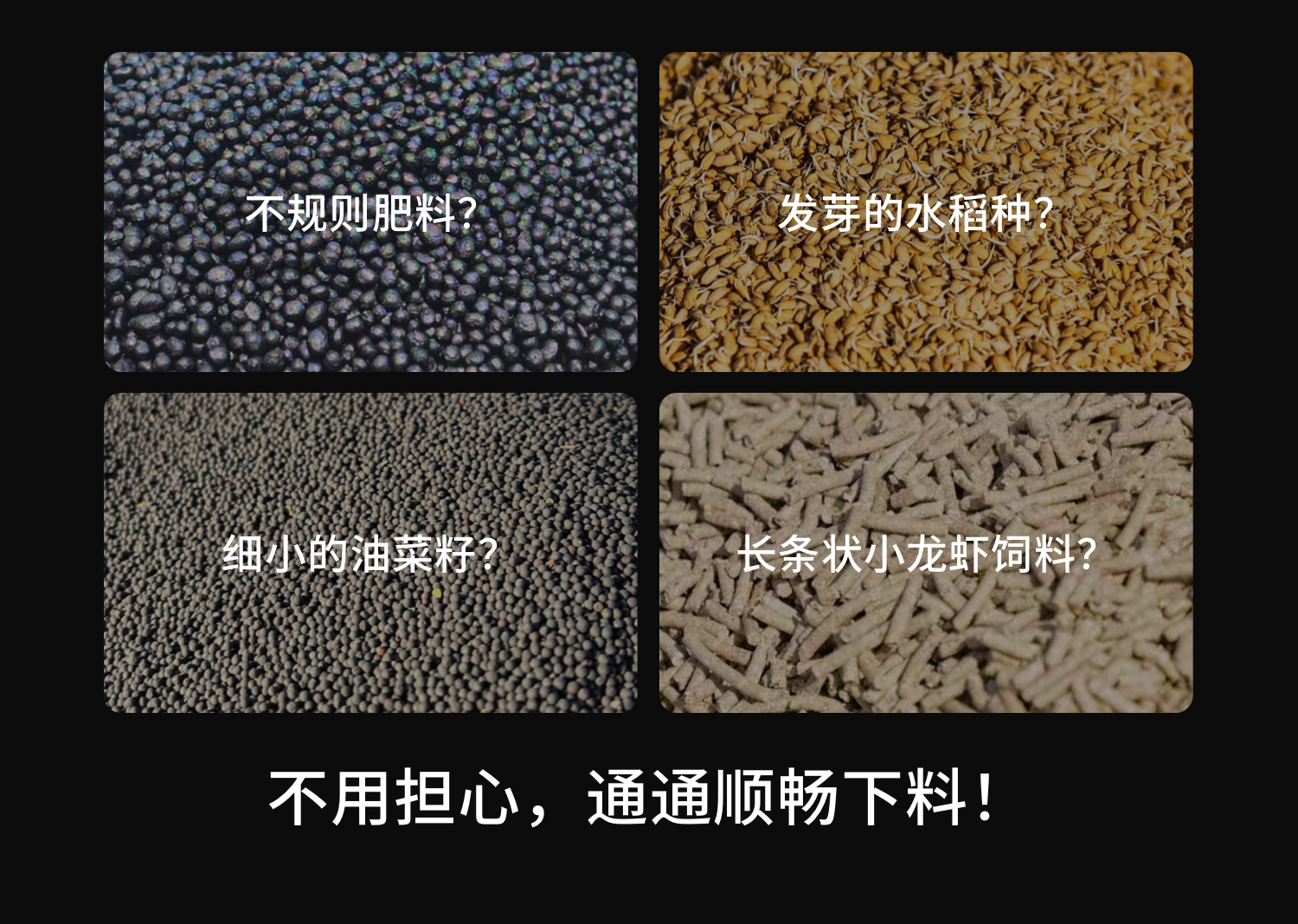 2.3.4. 最大推料速度测试颗粒物为尿素。实际作业数据取决于实际情况。产品使用情况将受作业环境、温度、人为操作方式等原因而可能存在偏差,请用户严格按照官方产品说明及指引予以使用。